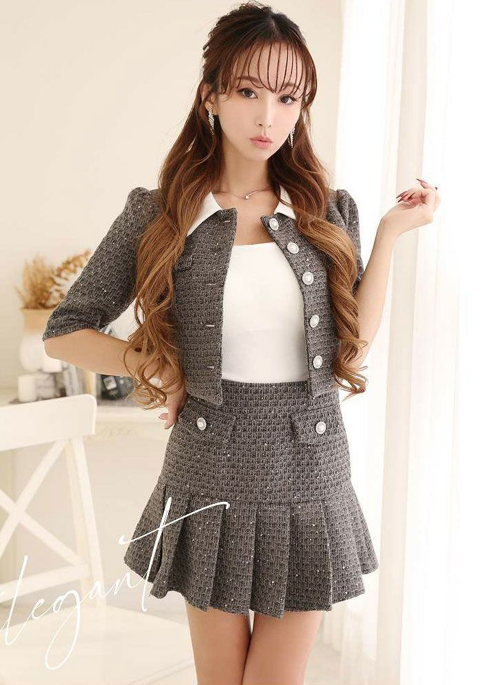 ふんわり広がるミニスカートが超可愛い🎀スーツだって甘めに着こなしたい人にはおすすめ👀