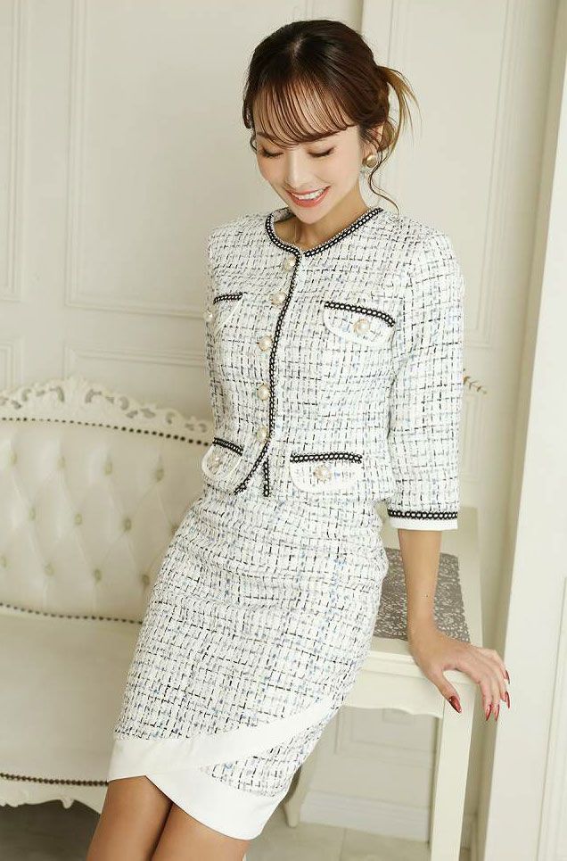 上品なホワイトカラーは清潔感たっぷり💖パールボタンで華やかさも取り入れた大学入学式スーツです🙆♀️
