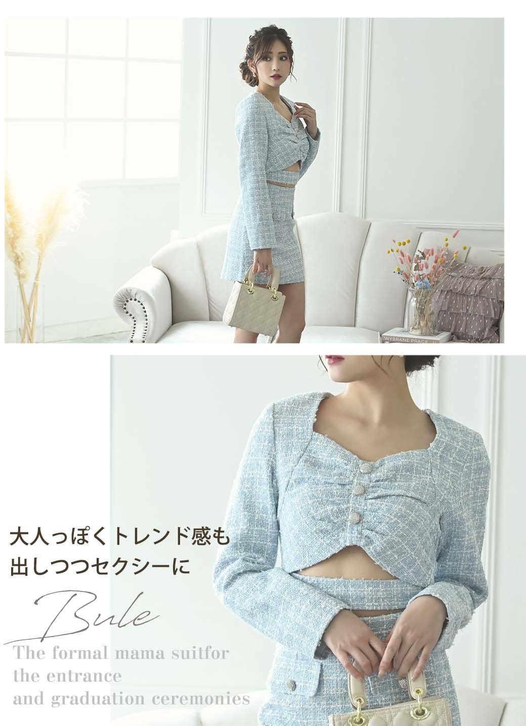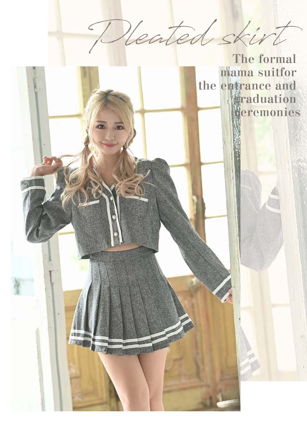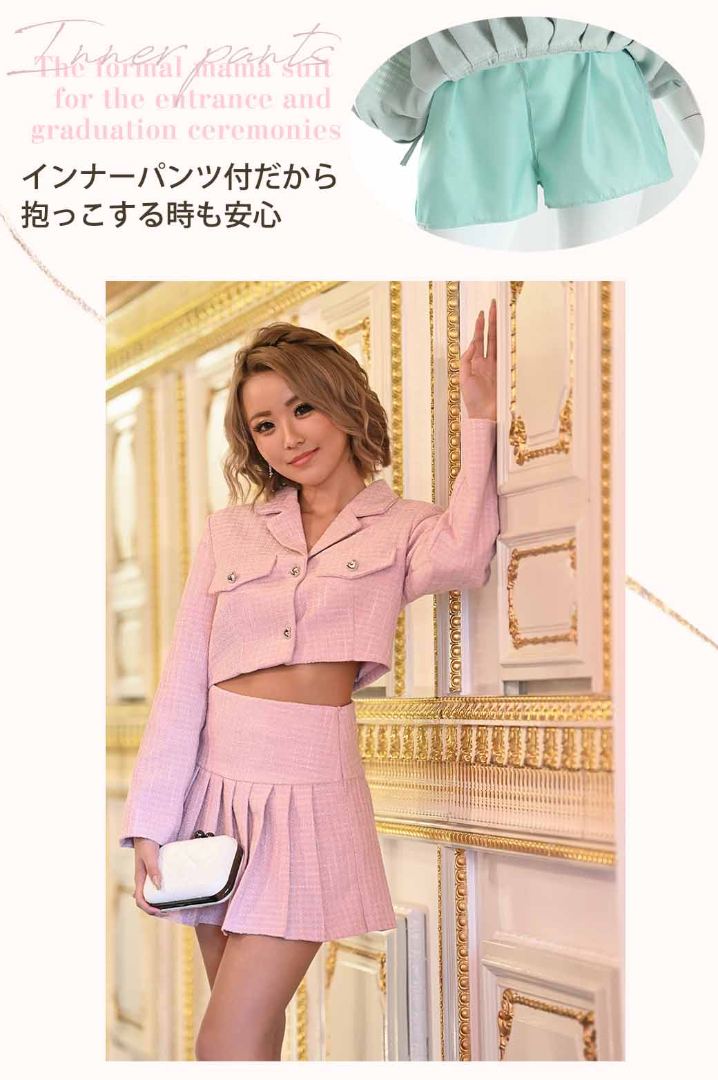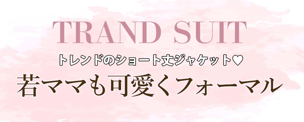 脚長効果ありのショート丈若ママ セットアップ フォーマルスーツ。