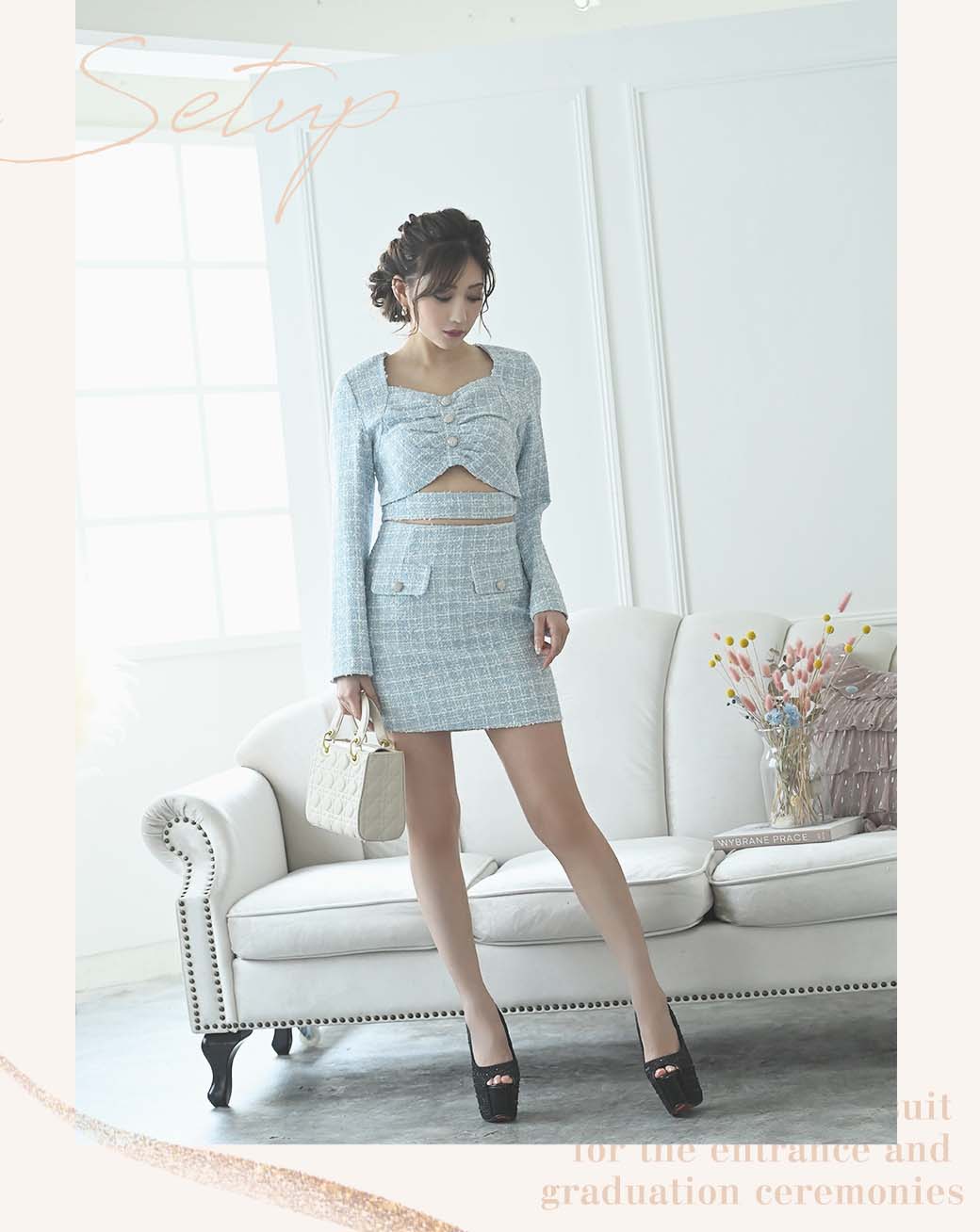 ショート丈スーツはフェミニンであざとカワイイ♡