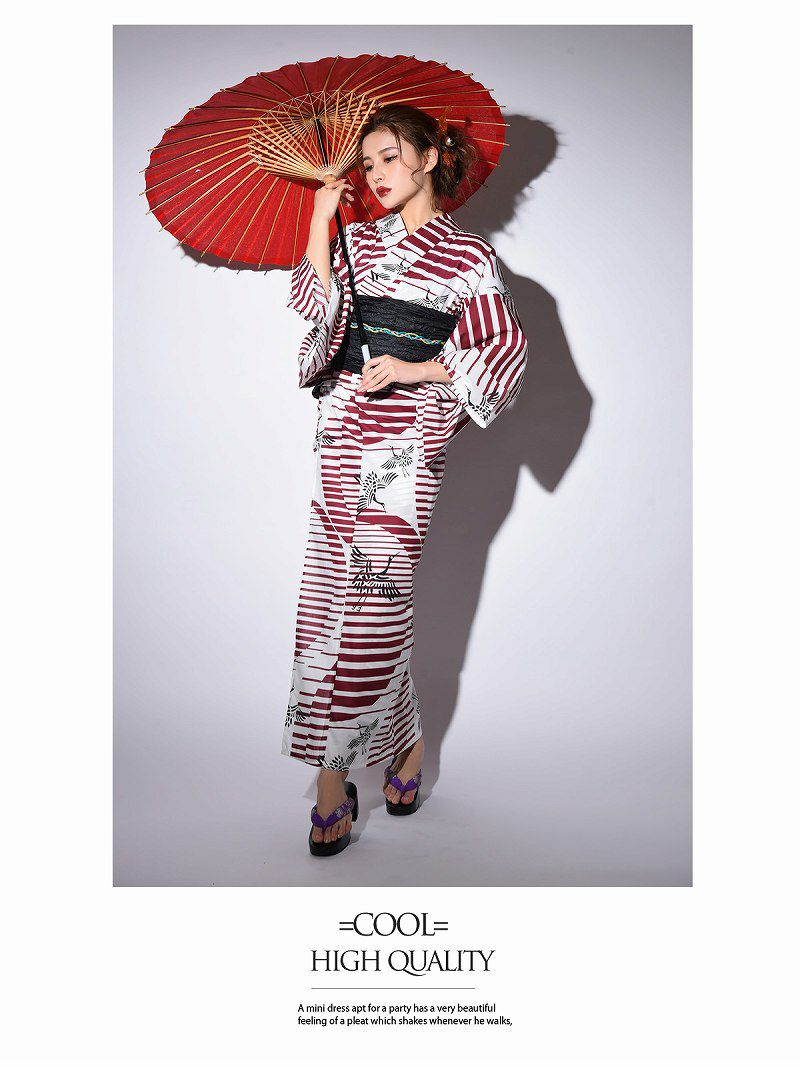 白地×赤ストライプ大人モダンキャバ浴衣