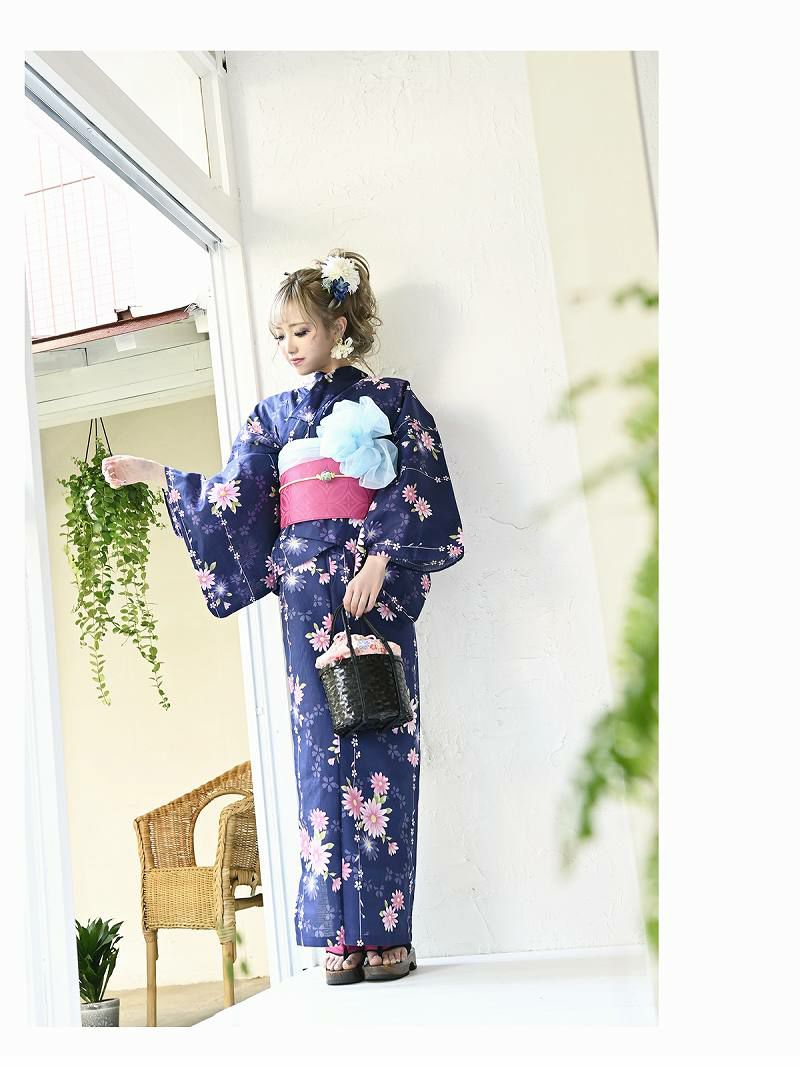 小華柄×ネイビーセパレート浴衣