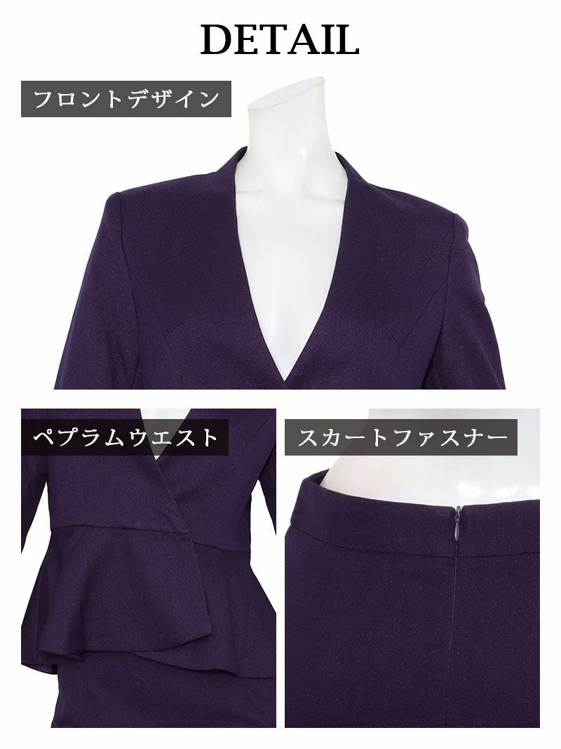 4. 先行予約割¥13800→¥13109!※一部予約販売※上質ノーカラージャケットペプラムセットアップタイトミニ丈フォーマルドレス 加賀美早紀 着用 キャバドレス【BelsiaLUX】(S/M/L/XL(2L))(パープル/グレー)