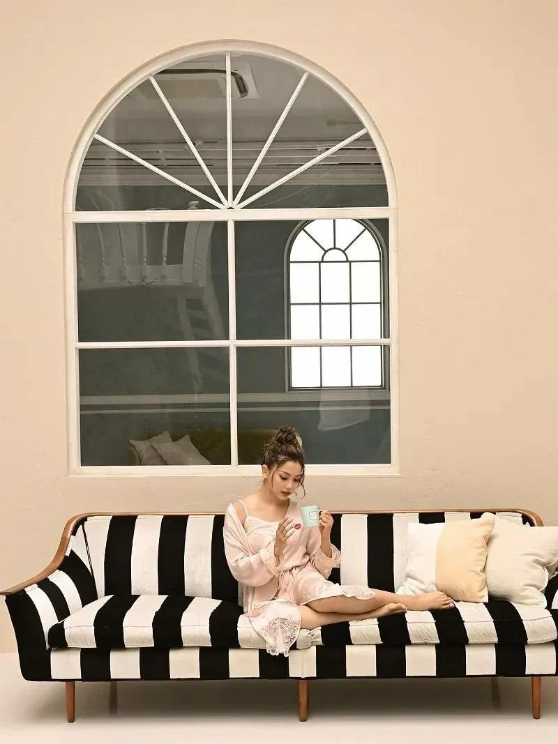 ピンク色のルームウェアは柔らかい色調とフェミニンな印象を与えることで、リラックスした空間を演出することができます。