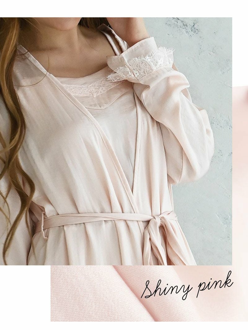 6. 【訳ありアウトレット】ピンクのレースガウンルームウェアセット【Rwear】(M)(ピンク)