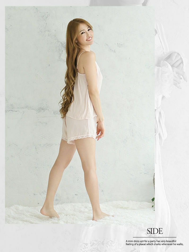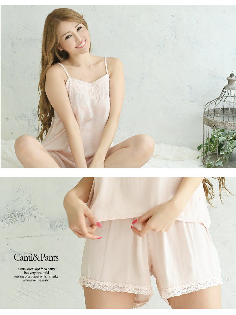 上品なサテン生地のキャミソールとショートパンツは、着心地が良く、可愛さ満点です。