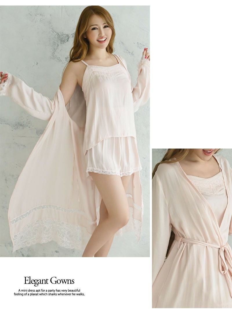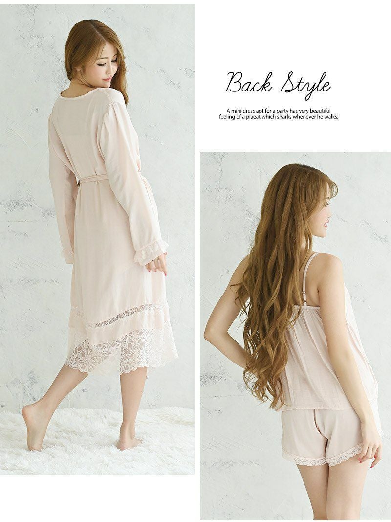 訳ありアウトレットのピンクレースガウンルームウェアセット!