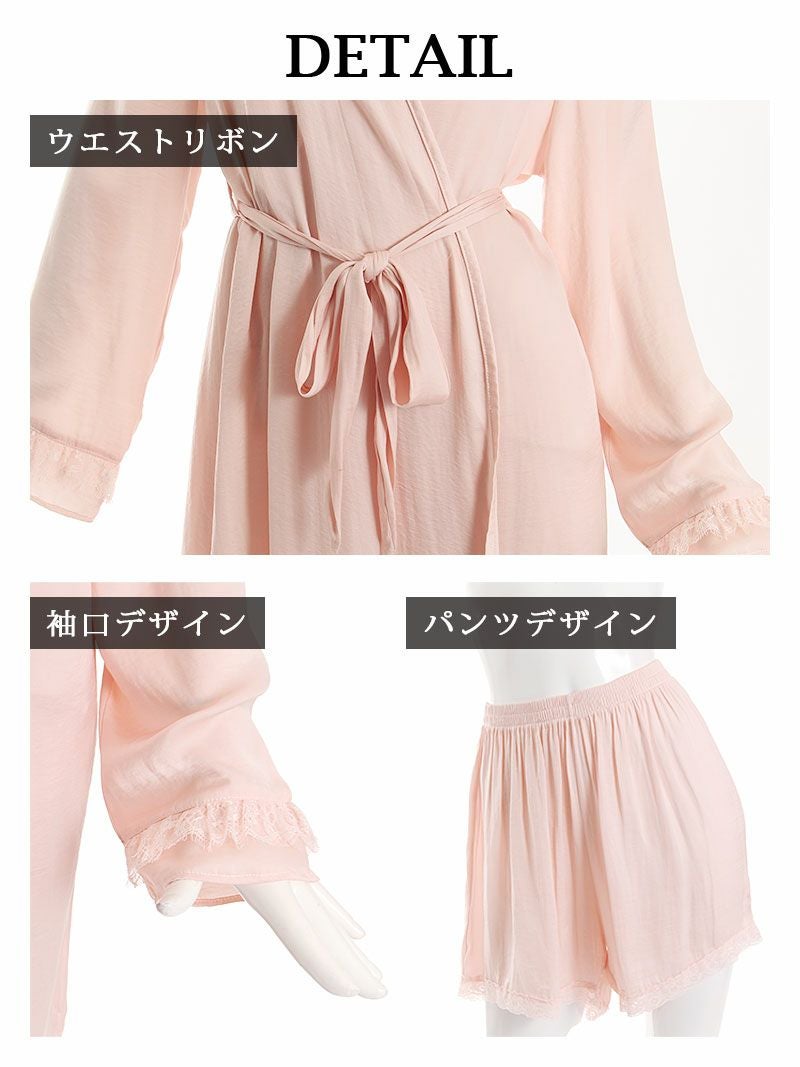 4. 【訳ありアウトレット】ピンクのレースガウンルームウェアセット【Rwear】(M)(ピンク)