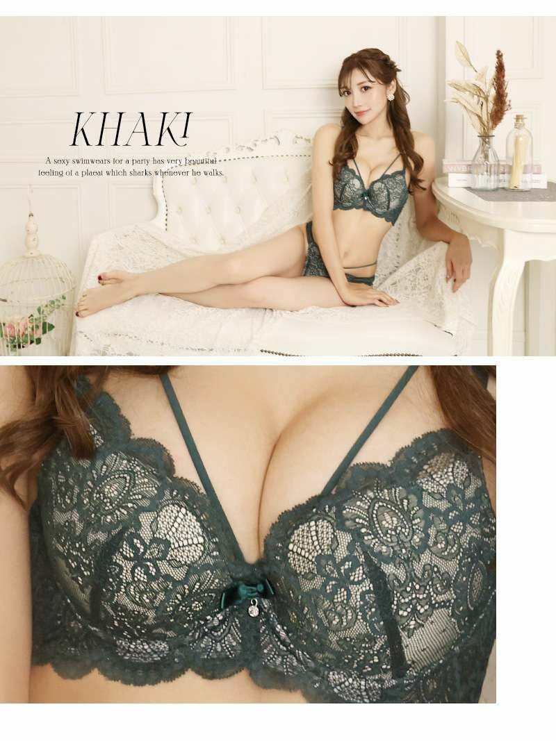 谷間を美しく見せてくれるエロかわランジェリー! Sexyレース勝負下着ブラ&ショーツ【Rwear】OEO(ブラック/カーキ/グレー)