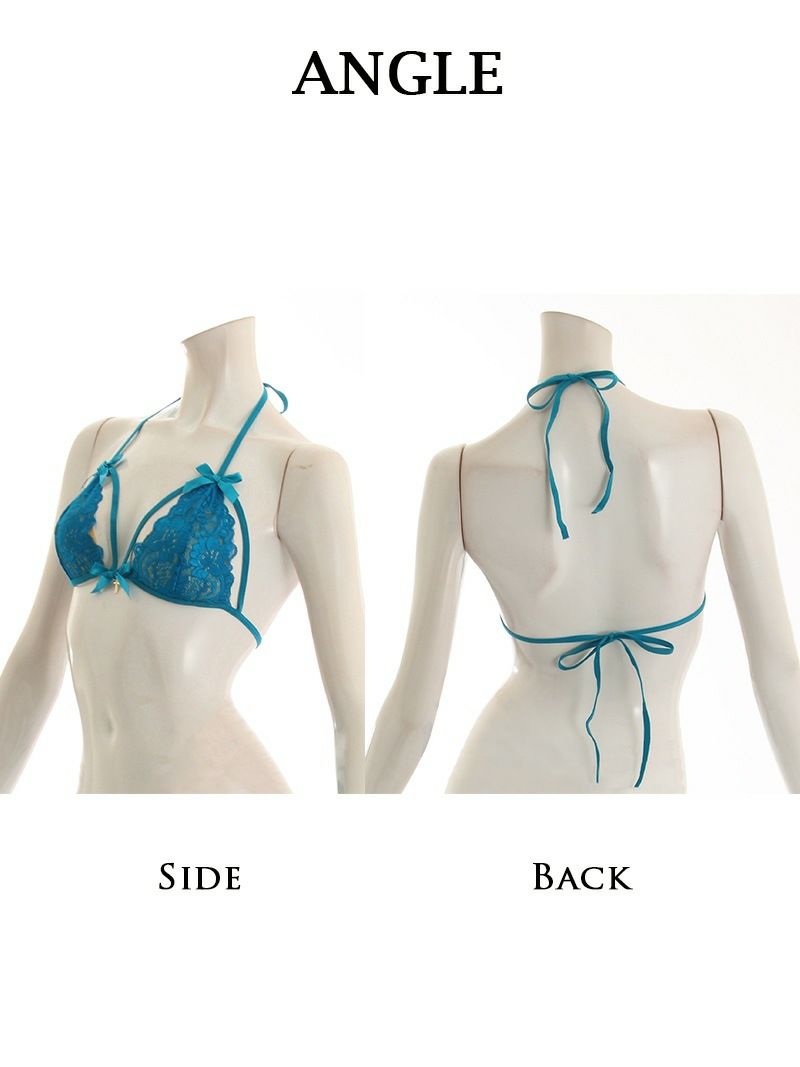 ヒモで結ぶタイプのホルターネックブラはバストをしっかり盛ることができ、胸元のストリングデザインが男性の視線を奪う単品ブラです。