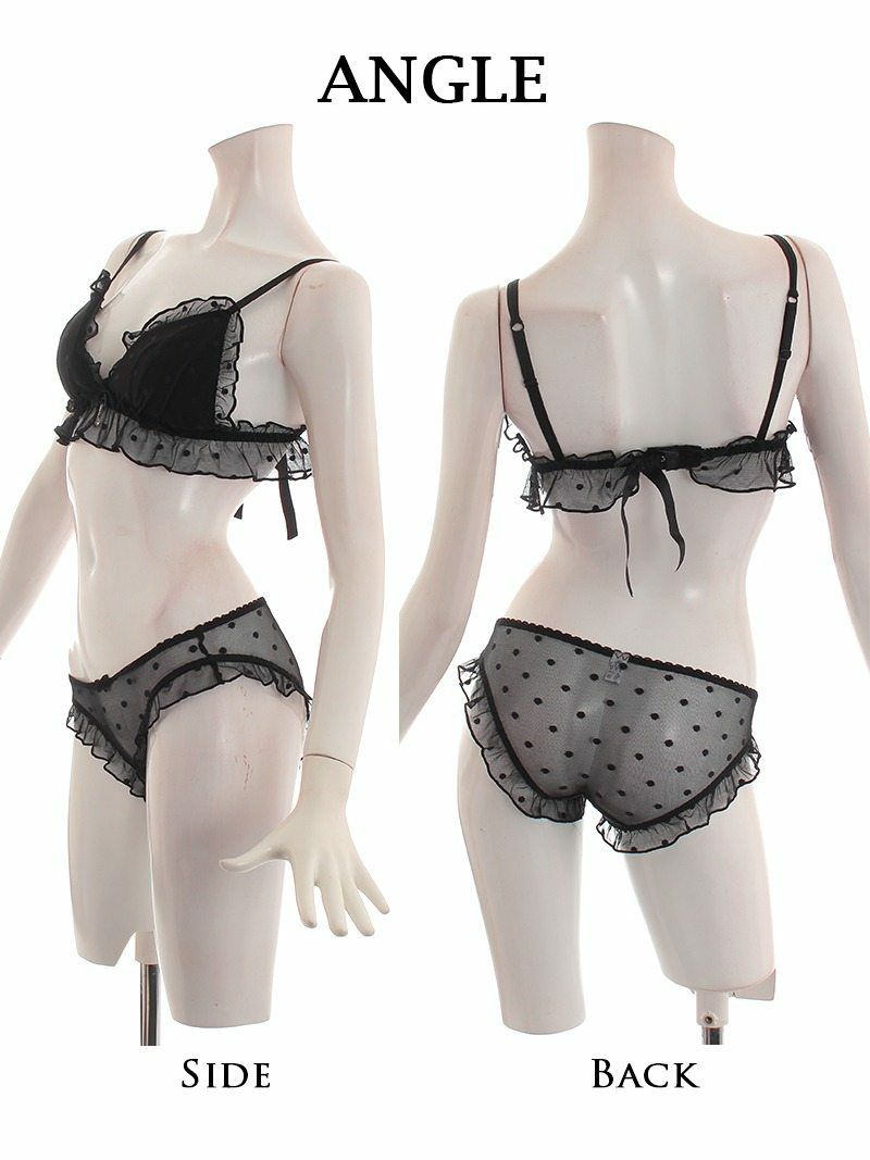 魅力的なドットシースルー下着セット かわいいドットシースルーブラ&ショーツ ノンワイヤー2点下着セット【Rwear】(M/L)(ブラック/ピンク)