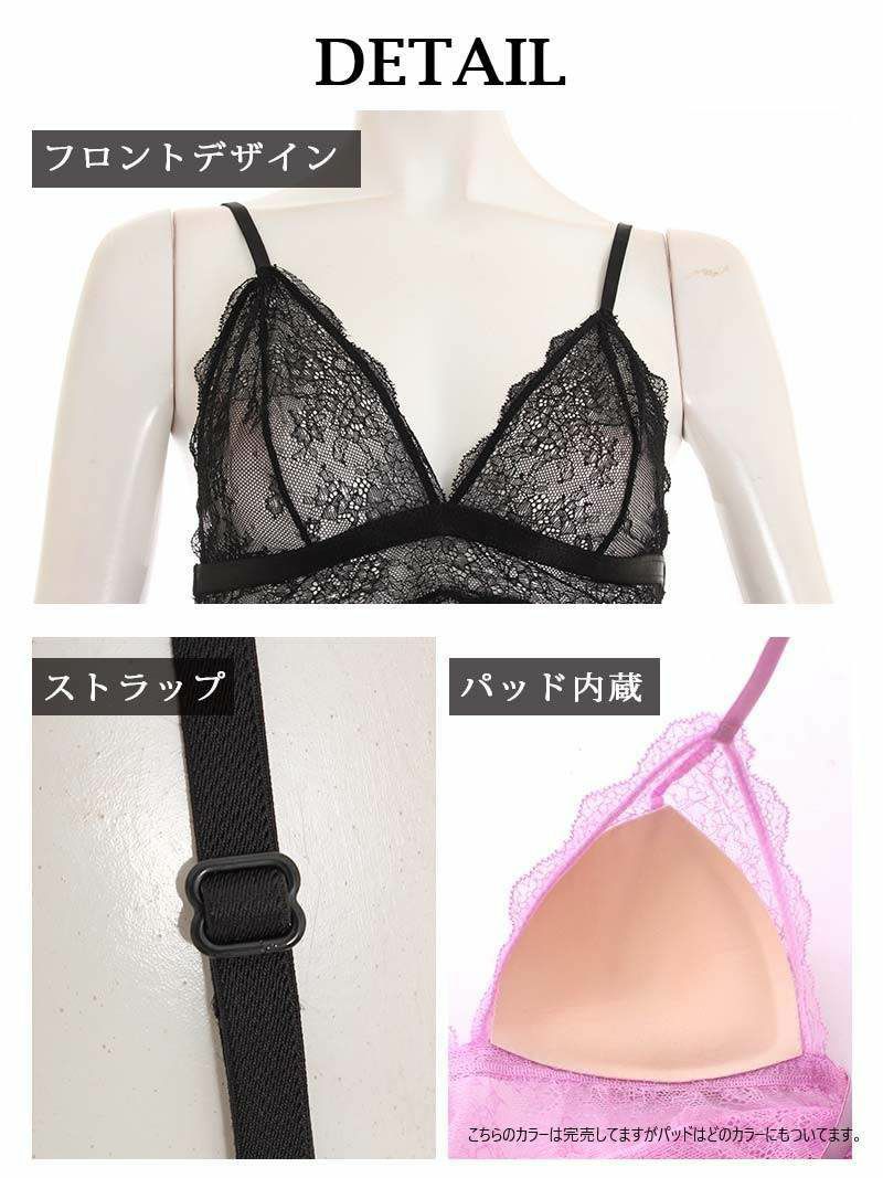 楽々快適!バット付きレースブラ バット付きノンワイヤー総レース楽ちんブラ 見えてもインポート風カワイイブラレット【Rwear】