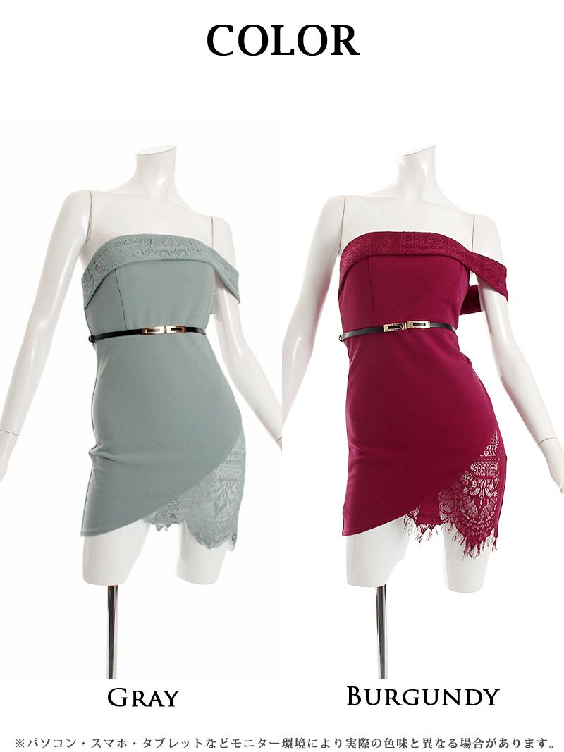 5. 裾レースオフショルワンカラータイトキャバクラドレス まぁみ 着用キャバドレス【Ryuyu】(S/M/L)(グレー/バーガンディ)