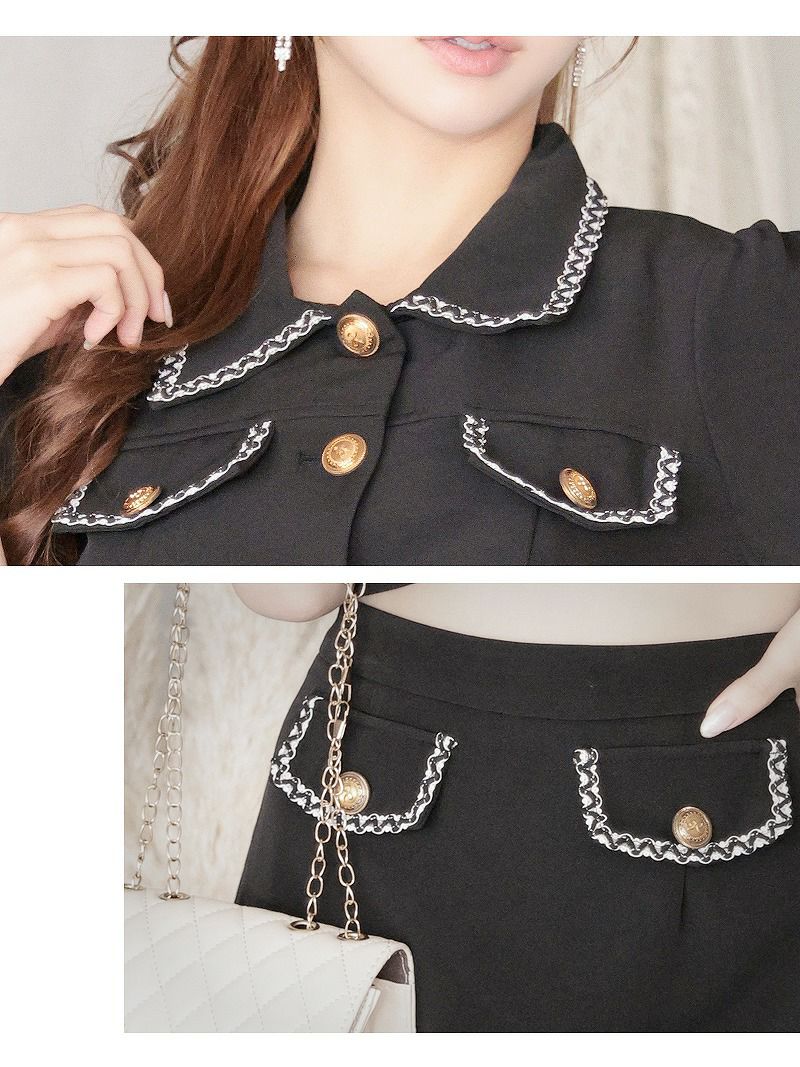 7. ハーフスリーブクラシカルツーピース韓国風セットアップドレス【Ryuyu】(S/M/L)(ブラック/ホワイト)
