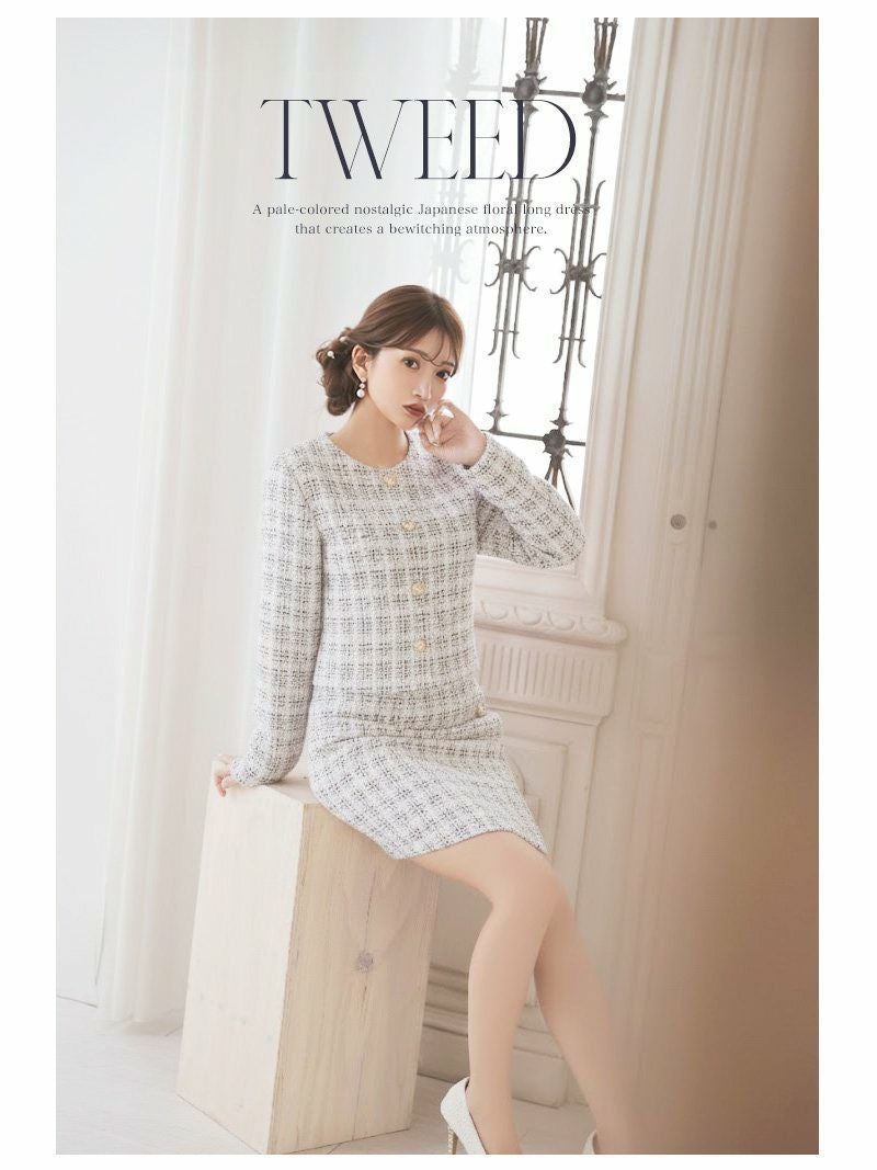 長袖のノーカラーデザインなので、同伴やアフターでも品良く着こなせます。