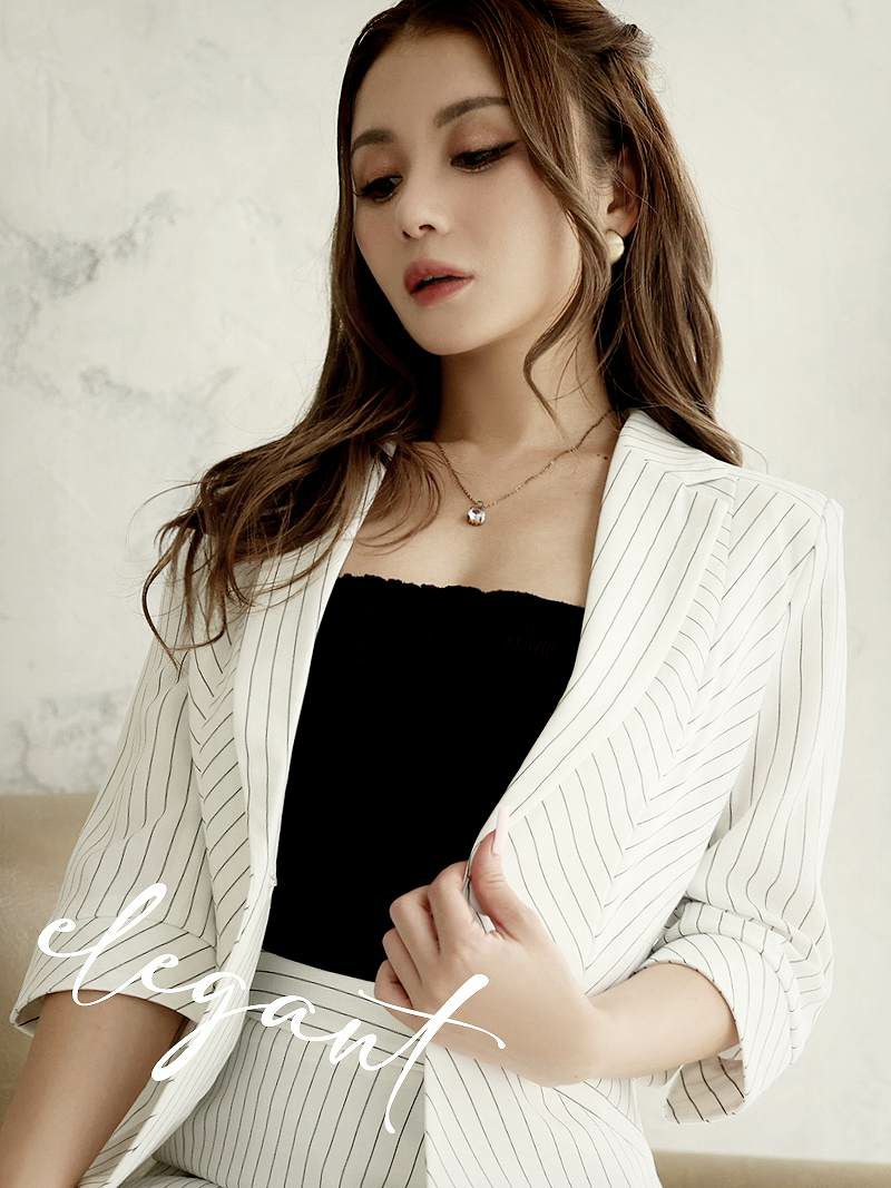 大人魅力溢れる細ストライプスーツ 大きいサイズ完備!!細ストライプ2p五分袖キャバクラスーツ キャバスーツ【Ryuyu】(S/M/L/2L/3L)(ホワイト/ブラック/ネイビー)