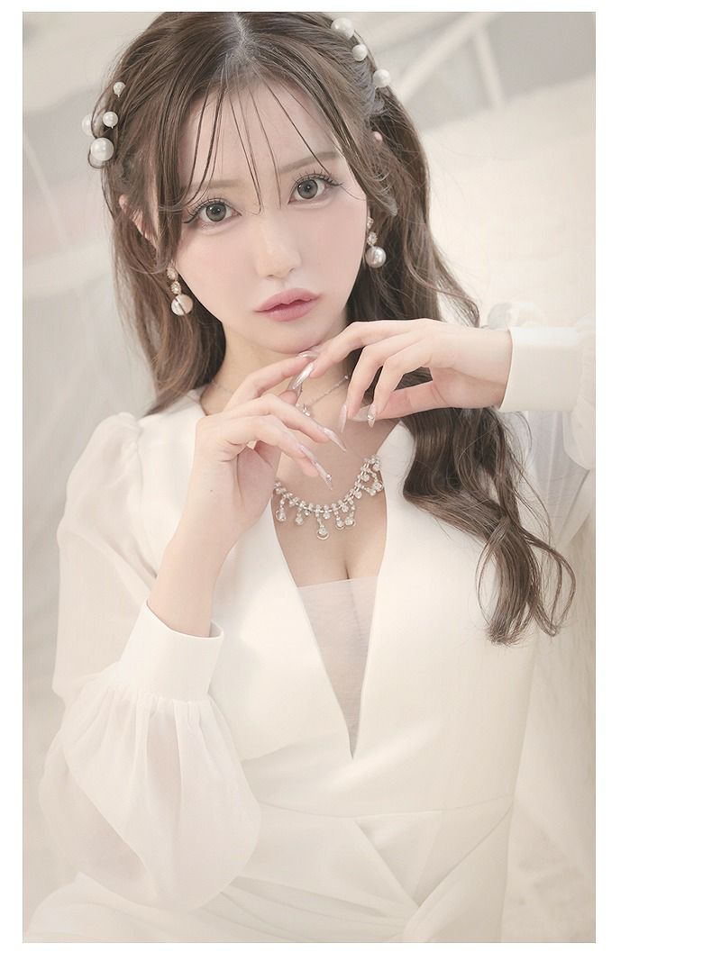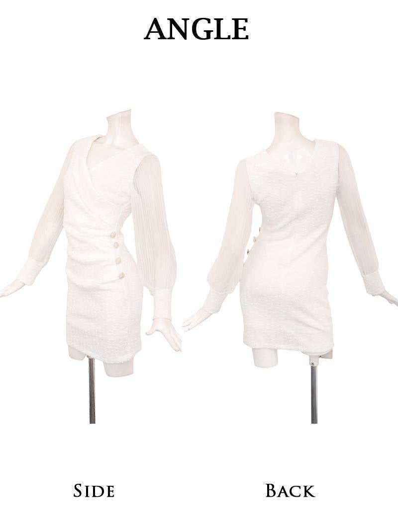 谷間&体型カバーも叶える、盛れるプチプラキャバドレス 先行予約割¥4680→¥4446!※一部予約販売※アシンメトリーシフォン袖ビジューミニドレス りせり 着用 キャバドレス【RyuyuChick】(S/M/L/XL(2L))(ホワイト/ブラック)