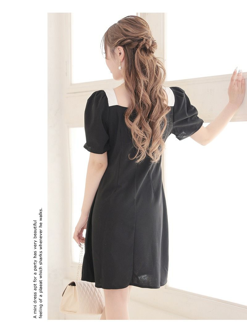 • オフィス風デザインストレッチキャバ嬢ミニドレス【RyuyuChick】(S/M/L)(ブラック/ネイビー)