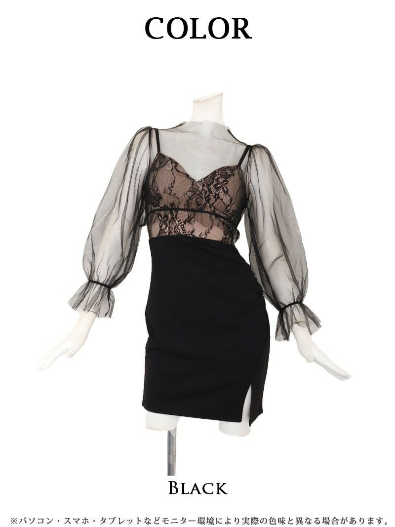 先行予約割¥2990→¥2841!※予約販売※襟付きシースルーデザイン袖付きミニドレス りせり 着用 キャバドレス【RyuyuChick】(M/L)(ブラック/ベージュ)