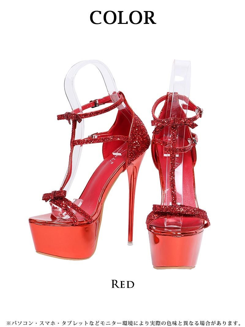 キラキラ足元からしっかり映え! レッドスパンコール16cmヒール前厚アンクルストラップキャバサンダル【RyuyuChick】(S/M/L)(レッド)