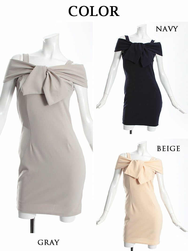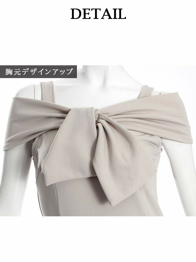 4. 【訳ありアウトレット】オフショルダーリボンデザインキャバドレス【RyuyuChick】(S/M/L/XL)(ネイビー/グレー/ベージュ)