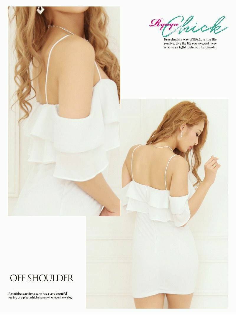 5. 【訳ありアウトレット】フリル袖付きタイトミニ丈キャバドレス【RyuyuChick】(M/L)(ブラック/ホワイト/ブルーA/レッド/ピンク/ブルーB)