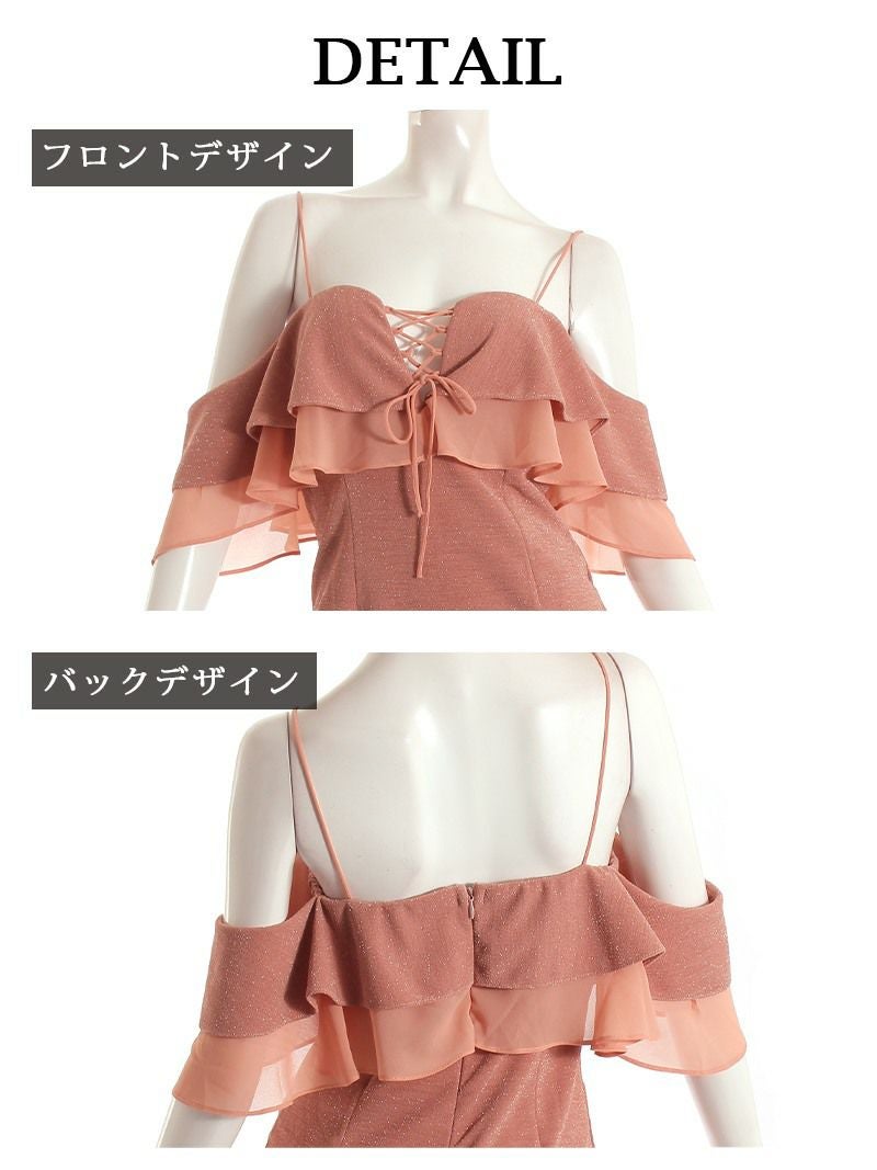 さらに、レースアップのディテールとキラキラとしたアクセントが加わり、キャバクラでの接客をより一層楽しませてくれる一着です。特別な夜を演出するために、このドレスをぜひお楽しみください!