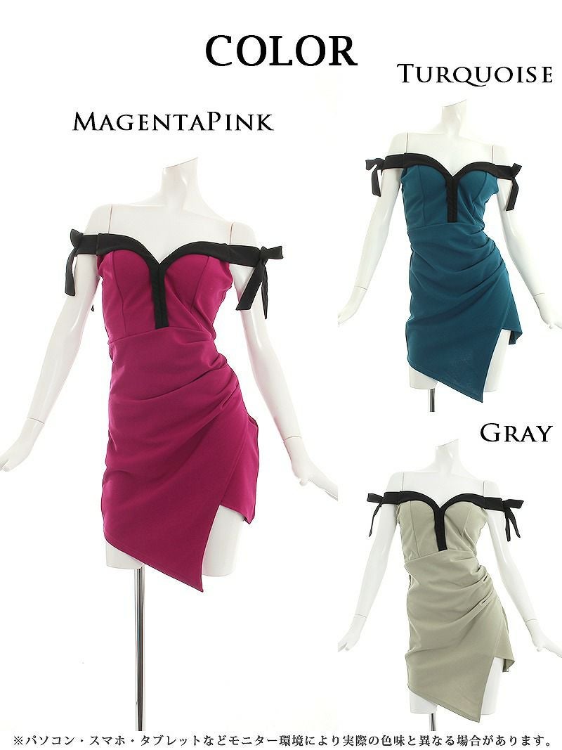 5. 【訳ありアウトレット】アシンメトリーVカットキャバクラミニドレス【RyuyuChick】(S/M/L)(グレー/ターコイズ/マゼンダピンク)