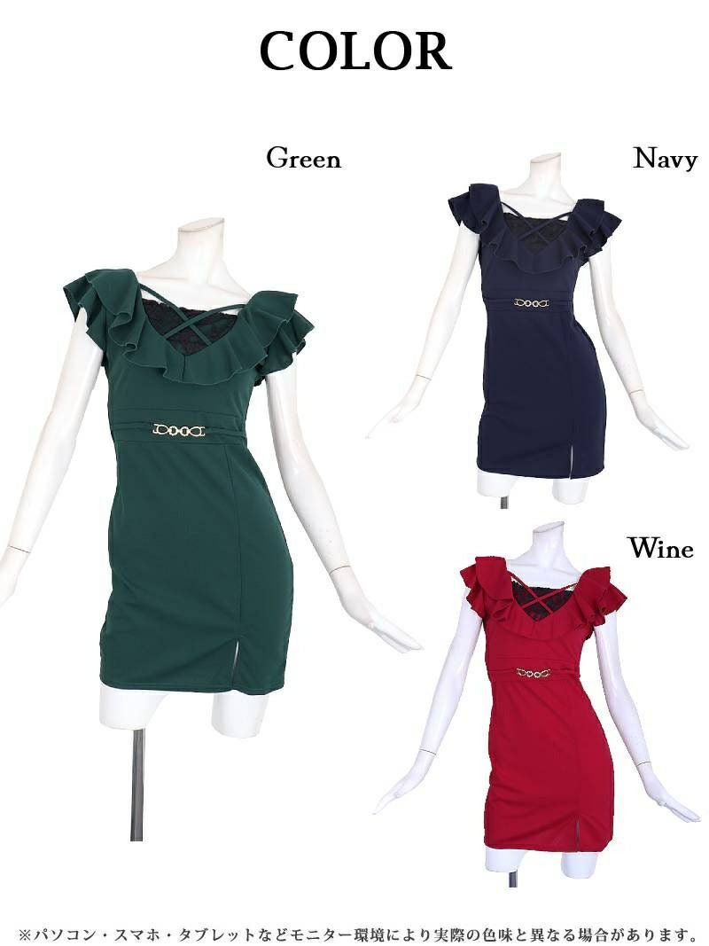 4. ビビッドカラー美脚魅せドレス【RyuyuChick】(M/L)(グリーン/ネイビー/ワイン)