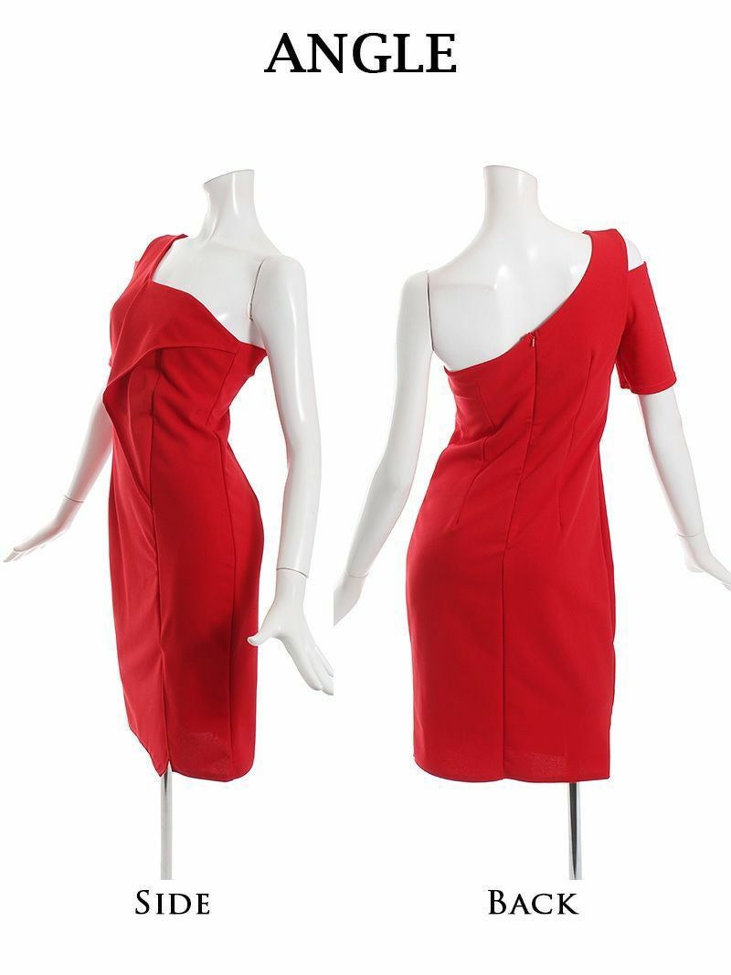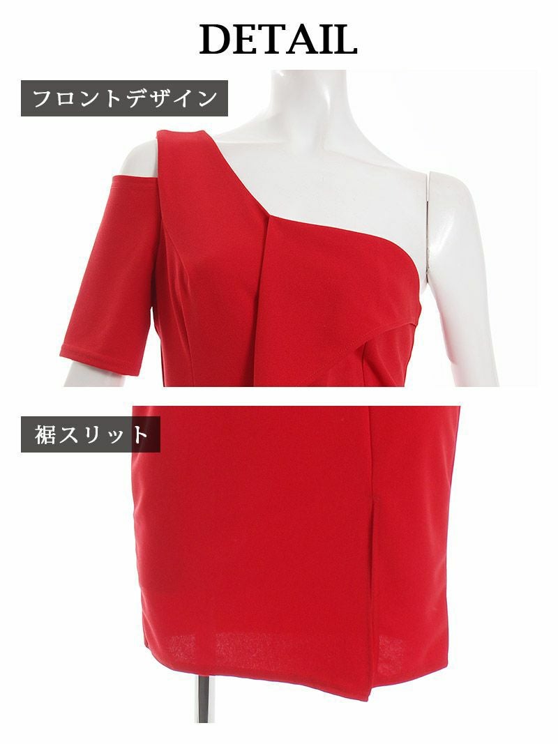 4. 【訳ありアウトレット】ワンショルダー可愛いミニキャバワンピース【RyuyuChick】(M/L/XL)(グリーン/レッド/ブラック)