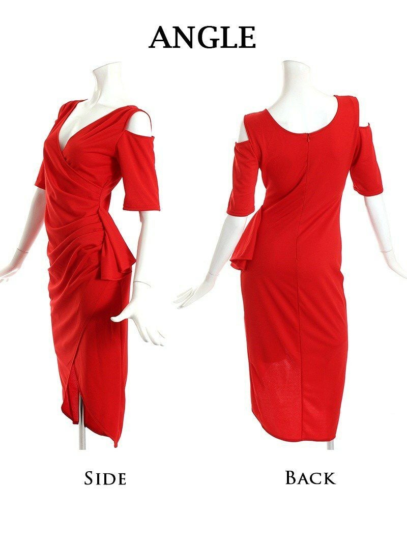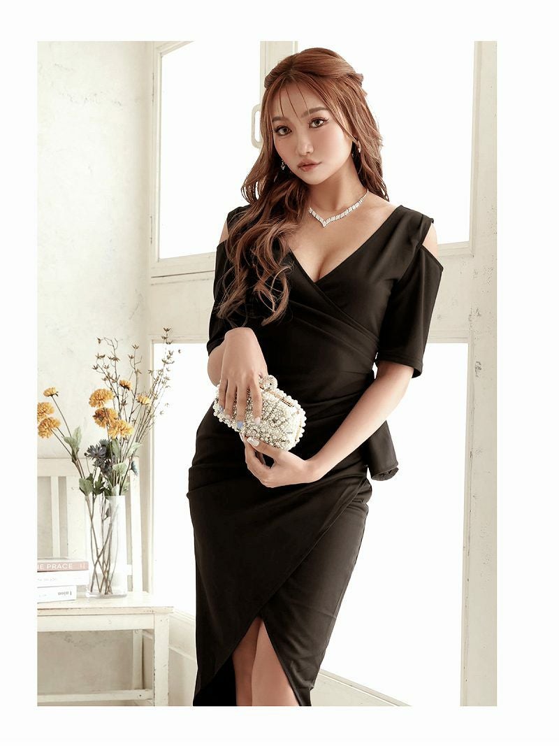 ワンカラーが魅力的なオープンショルダーのキャバドレス。