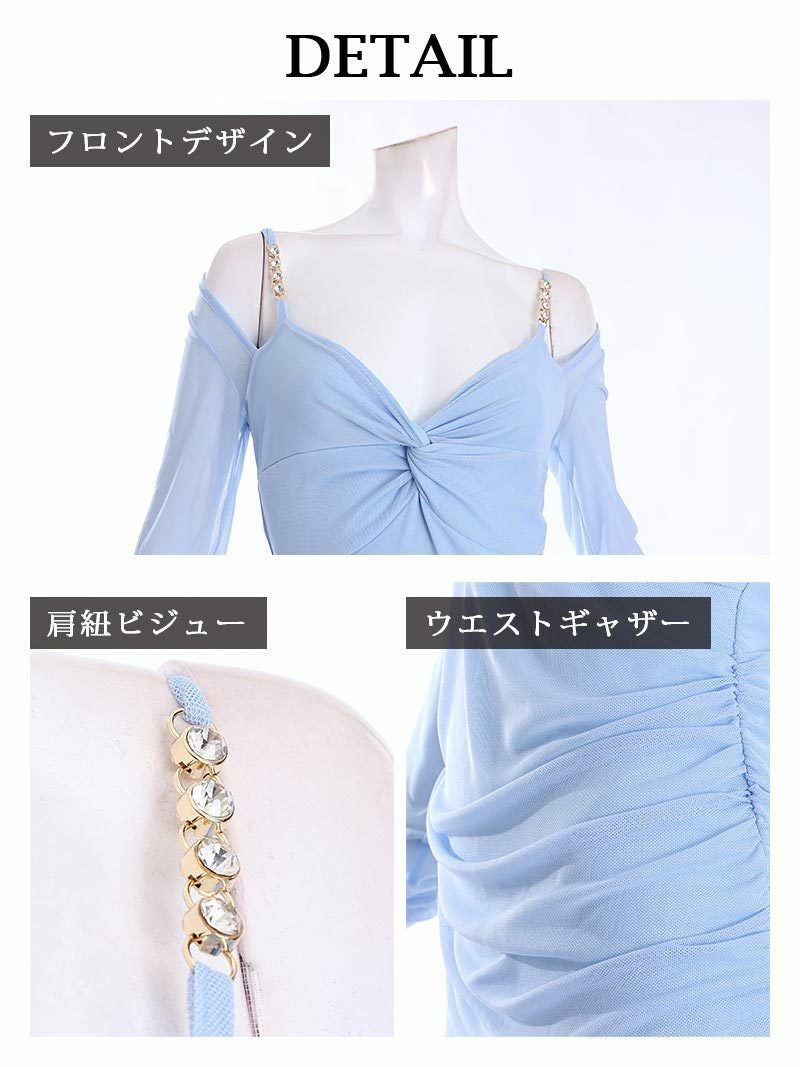 4. 先行予約割¥3480→¥3305!※一部予約販売※オープンショルダーストレッチメッシュミニ丈キャバドレス【RyuyuChick】(M/L)(ブラック/ホワイト/ブルー)