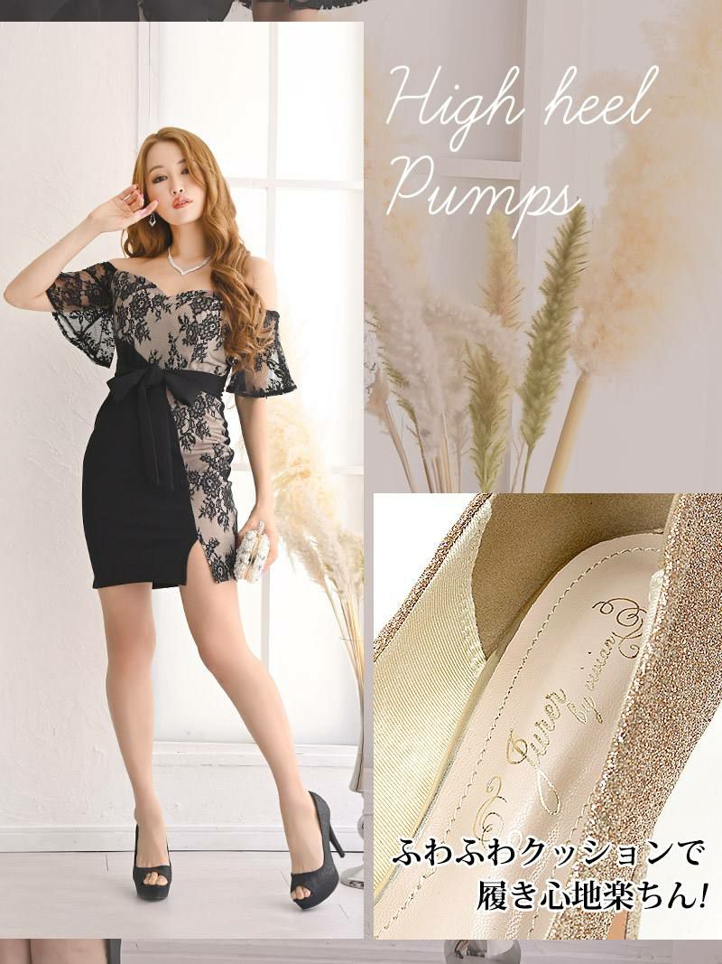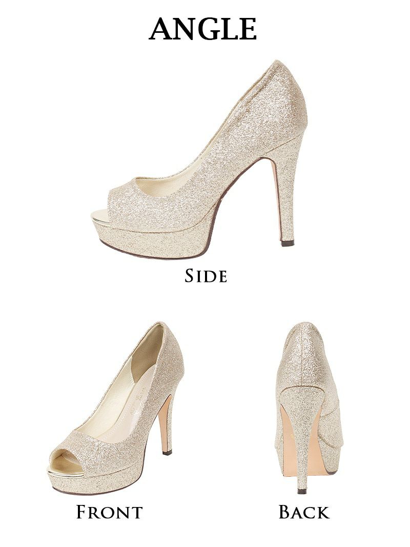 訳あり人気パンプス 【訳ありアウトレット】きらきらオープントゥキャバパンプス【RyuyuChick】(S/M/L)(シルバー/ゴールド/ブラック)