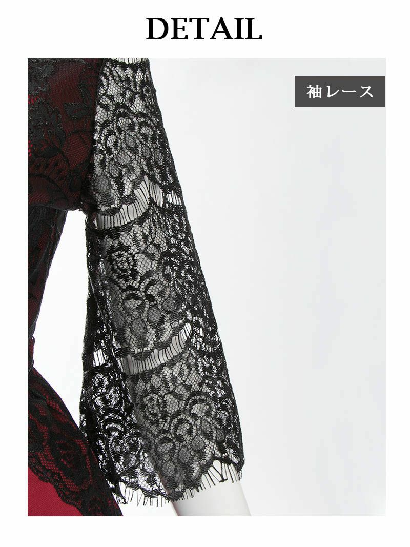 • 先行予約割¥3980→¥3781!※一部予約販売※韓国風フロッキーレース袖付きフレアキャバワンピース あいさ 着用 キャバドレス【RyuyuChick】(S/M/L)(ブラック(S/L/4月上旬))