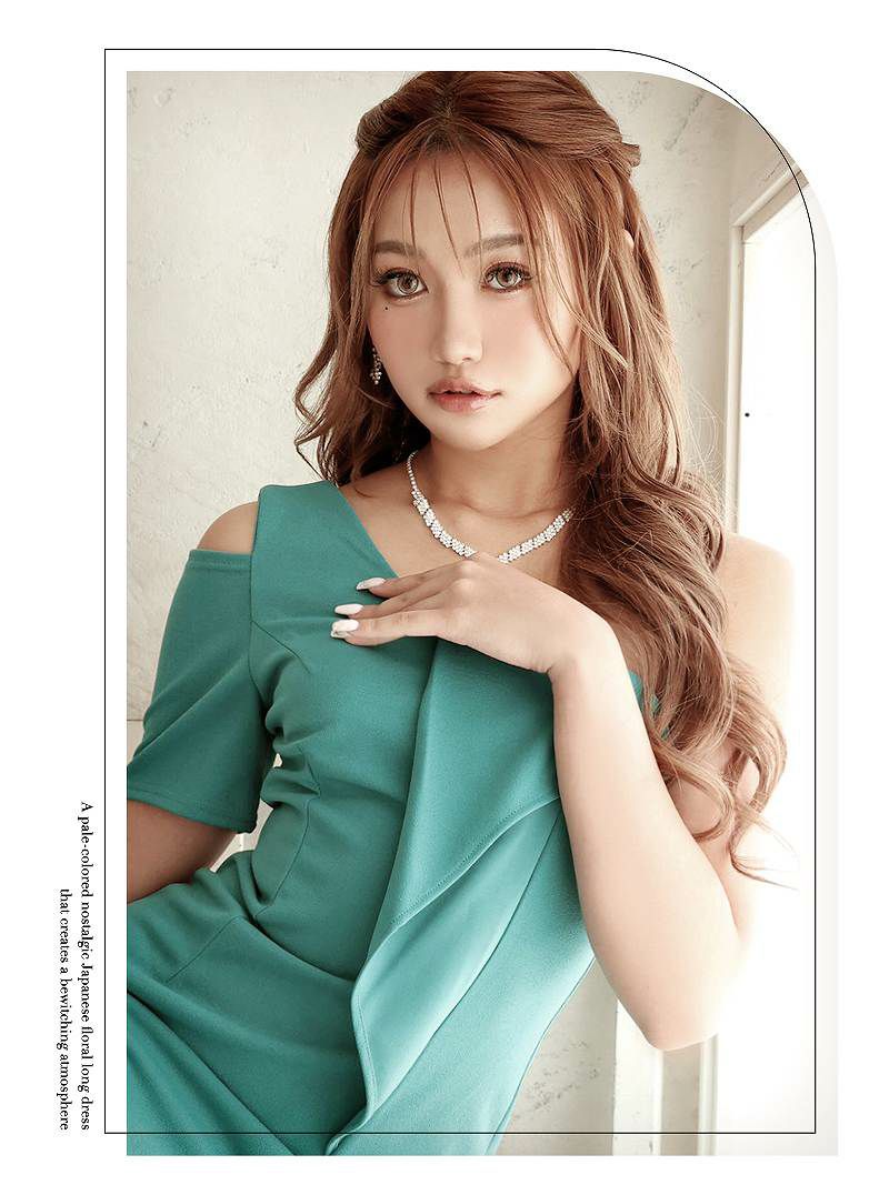 • オープンショルダー袖フリルタイトキャバドレス あいみん りおん 着用 ミニドレス【RyuyuChick】(S/M/L/XL(2L))(ブラック/グリーン)