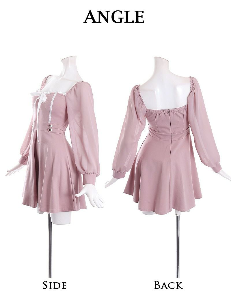 • 先行予約割¥2990→¥2841!※予約販売※襟付きシースルーデザイン袖付きミニドレス りせり 着用 キャバドレス【RyuyuChick】(M/L)(ブラック/ベージュ)