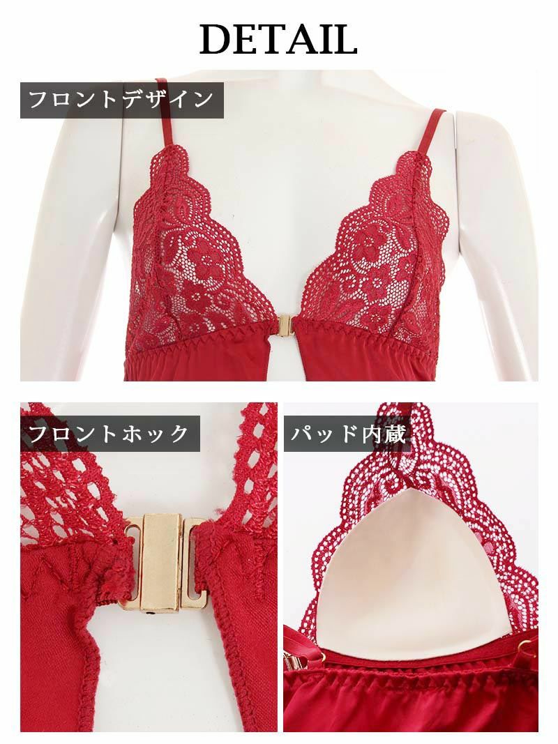 胸元のスカラップレースが可愛さもあり、光沢のある素材がセクシーさも兼ね備えており思わず彼氏をドキッとさせちゃいます。