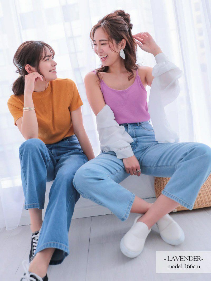 豊富なカラバリ、涼しいリブニット カラバリ豊富!!無地サマーリブニットキャミソール シンプル単色カットソープチプラトップス【Rvate】(M)(ブルー/イエロー/ピンク)