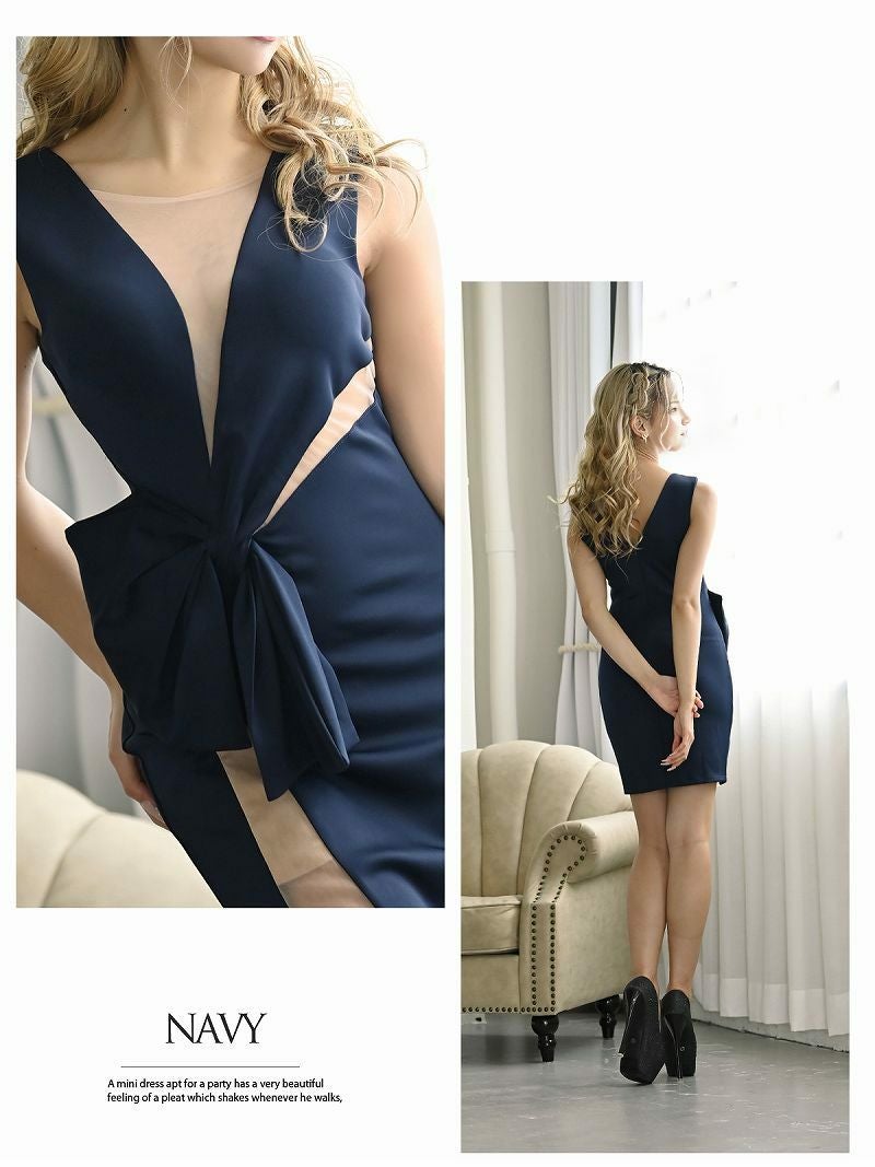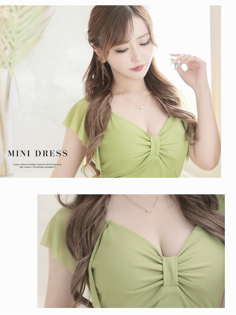 プチプラなのに上品で大人っぽ 膝丈カシュクール谷間見せワンカラー袖付きミニドレスキャバドレス りおん着用【RyuyuChick】(XS/S/M/L/XL(2L)/XXL(3L))(ブラック/ピンク/レッド/ネイビー/ベージュ/グリーン/ライトブルー)