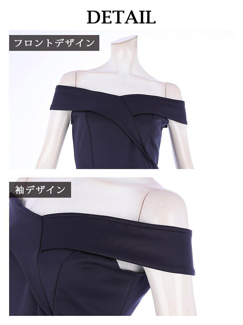 隠して見せる!体系カバー力高めドレス シンプルオープンショルダーミディ丈キャバドレス りおん着用(XS/S/M/L/XL(2L)/XXL(3L))(ブラック/ピンク/レッド/ネイビー/ベージュ/グリーン/ライトブルー)