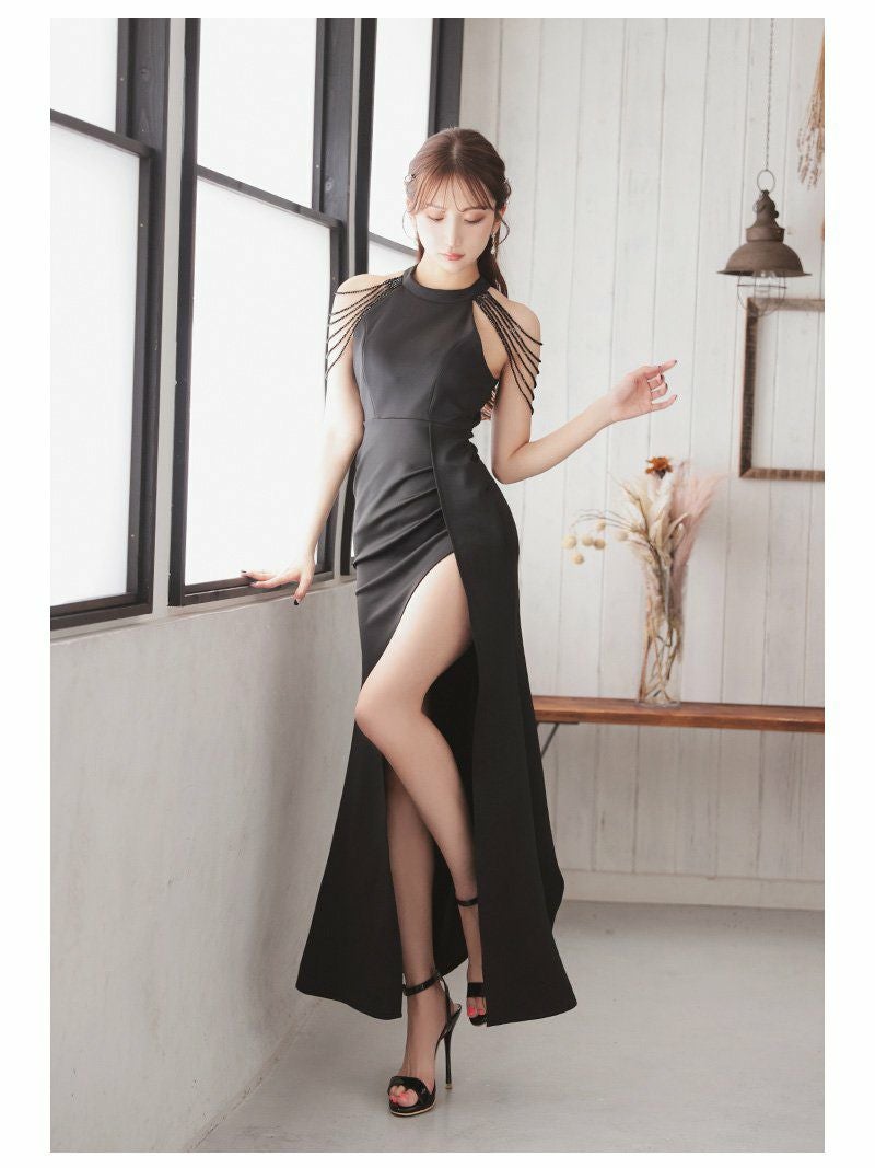 高級感のあるsexyナイトドレス 深めスリット入りマーメイドタイトロングドレス【RyuyuChick】(S/M/L)(グリーン/レッド/ブラック/オフホワイト)