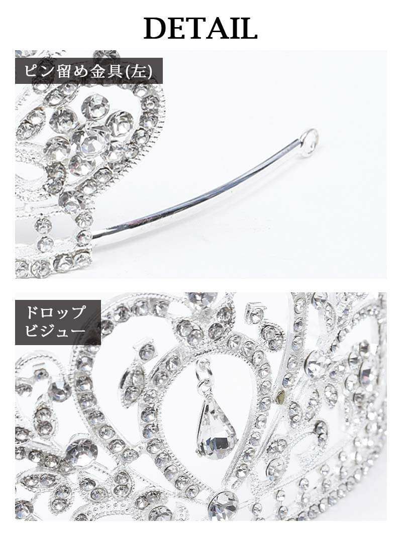 お姫様気分で一際目立つ ティアラシルバービジューヘアアクセサリー【Ryuyu】(フリーサイズ)(シルバー)