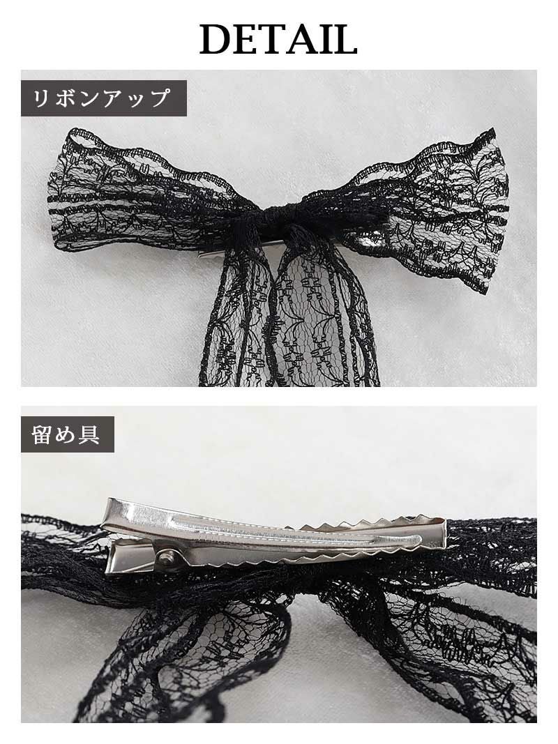 つけるだけでフェミニン度アップ 韓国風クリップ型レースリボンヘアアクセサリー【Ryuyu】(フリーサイズ)(ブラック/ホワイト)