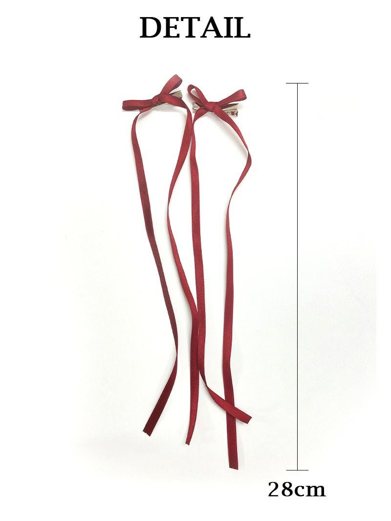 4. ロングリボンデザイン韓国風ヘアアクセサリー【Ryuyu】(フリーサイズ)(ブラック/アイボリー/ワイン)
