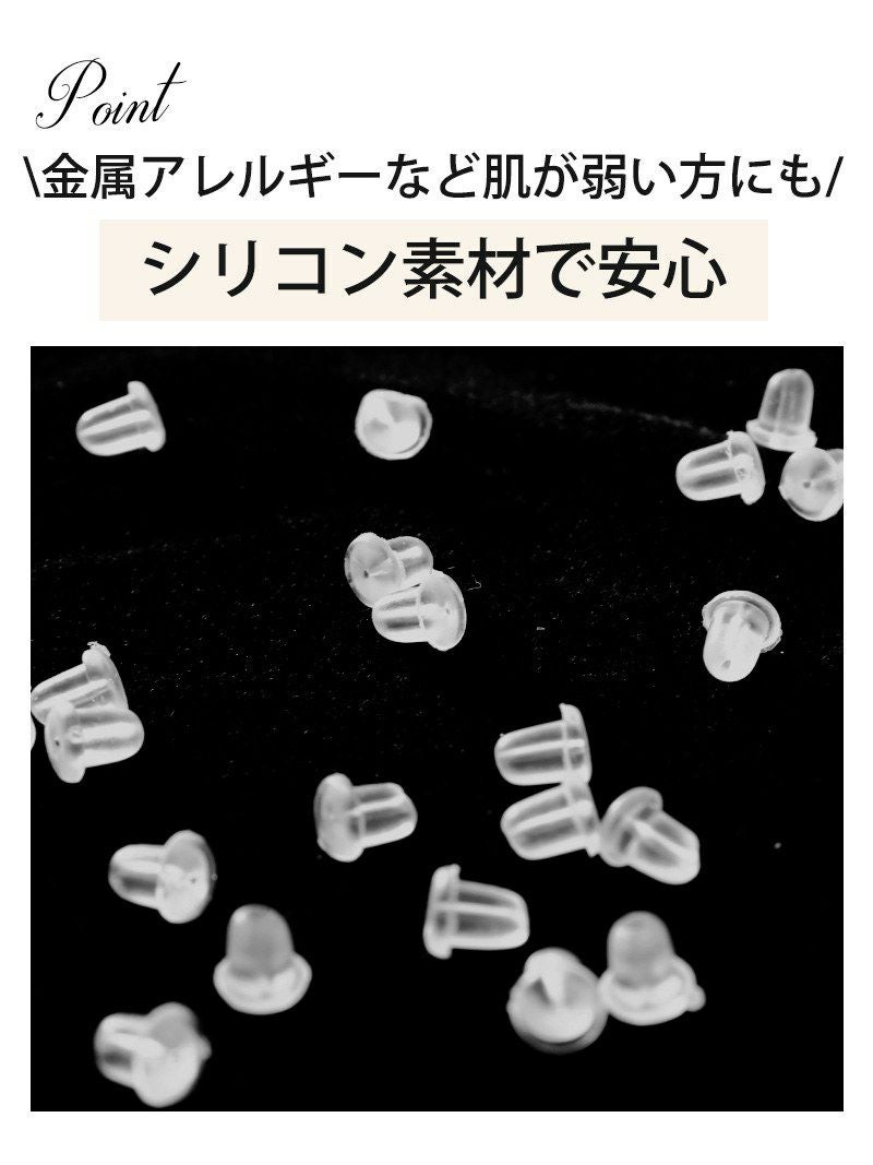 シンプルなクリアのシリコン素材でどんなピアスにも使える透明ピアスは金属アレルギーや肌が弱い方でも安心して使っていただけるシリコンキャッチになります。