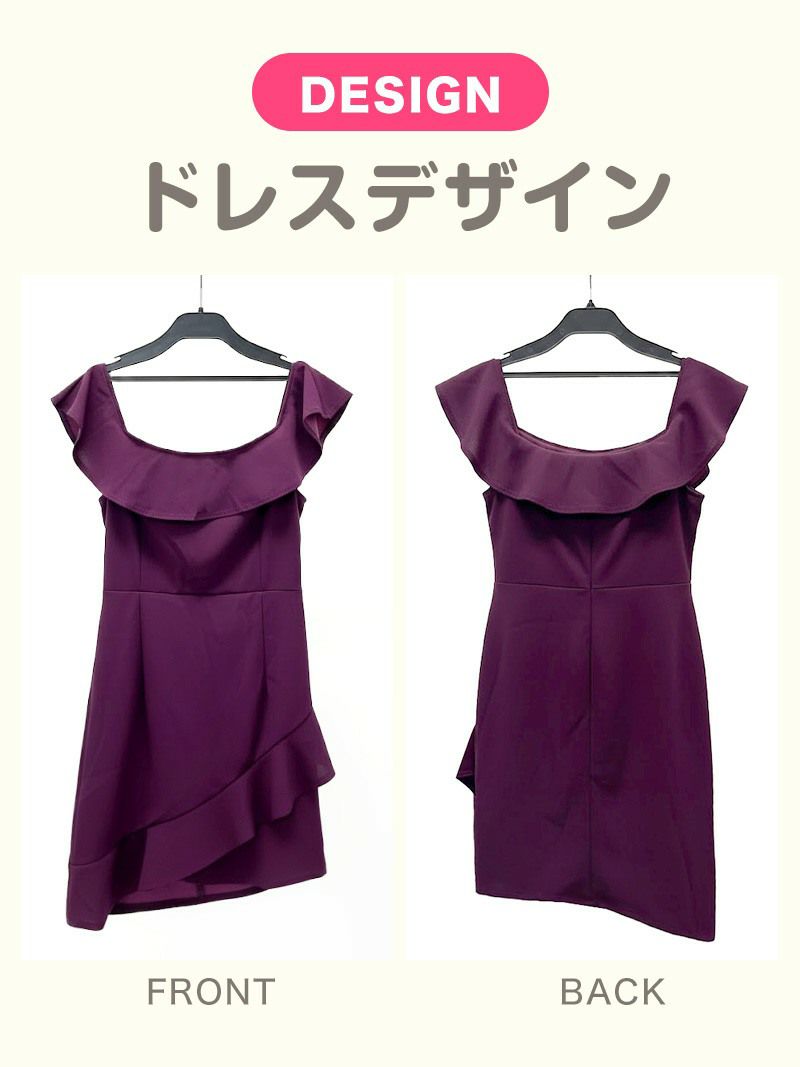 適度な露出で色っぽ 早いものがち!オフショルアシンメトリーデザインタイトミニドレス【Ryuyu】(M)(パープル)