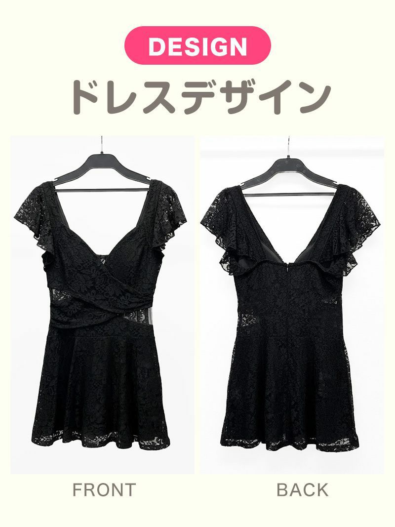 かわいさと色気をゲット! 1点限り!総レースデザインウエスト透けフレアミニドレス【Ryuyu】(M)(ブラック)
