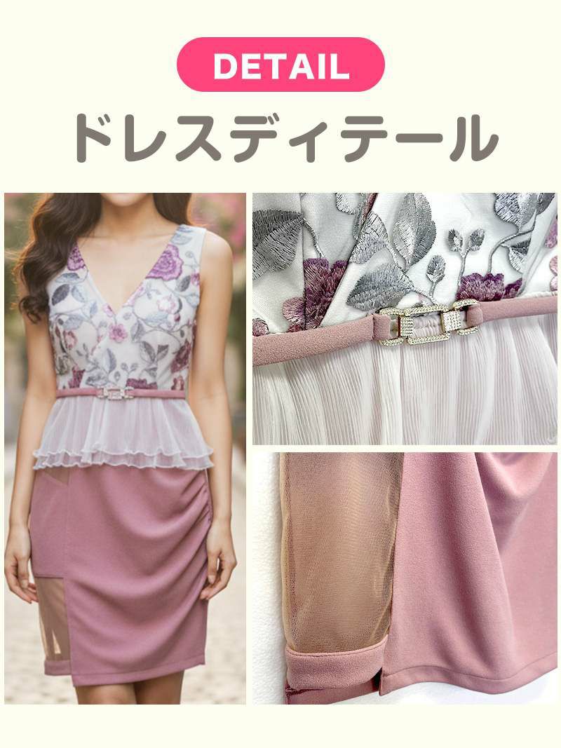 色っぽピンクで無双して! 早いものがち!花柄刺繍ペプラムタイトシアーミニドレス【Ryuyu】【ゾロ目福袋】(M)(ピンク)
