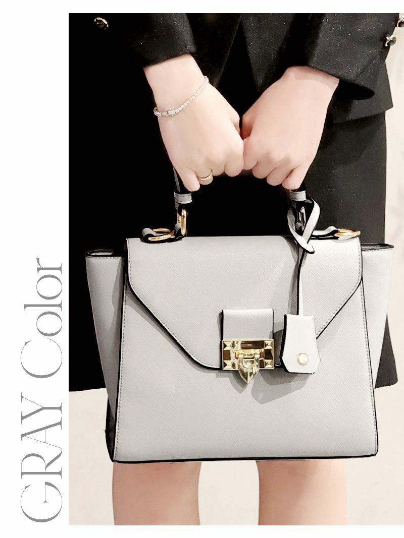 フロントにはゴールドバックルをあしらい高級感溢れるレディーズカバンは大きめのサイズ感なので収納力もばっちりです。