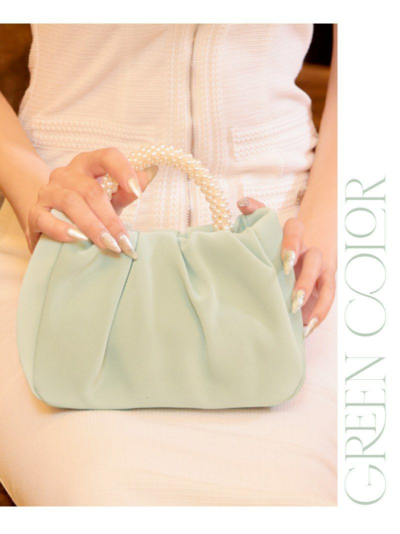流行りの2WAYミニバック スクエアパールデザイン店内ミニバック【Ryuyu】(フリーサイズ)(ブラック/ホワイト/ピンク/グリーン)